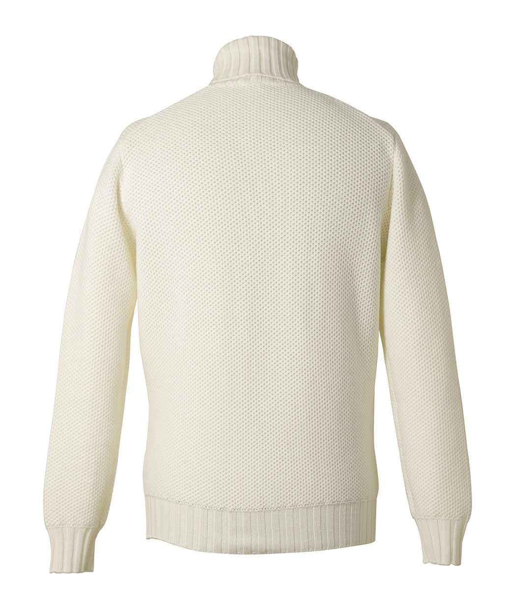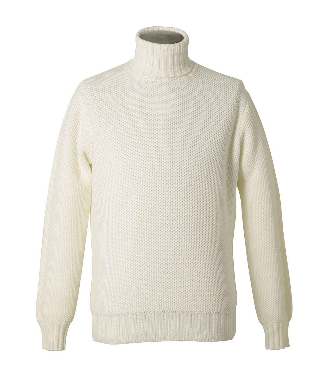 上質なウール100%の毛糸で立体的に編み上げたミドルゲージのタートルネックセーター。コートのインナーや素材感のあるジャケットのインナーにも良く合うボリューム感のシンプルなデザインのセーターに仕上がっています。しっかりとした保温力があり、柔らかな着心地も相まって晩秋から真冬にかけて活躍するセーターとなっています。