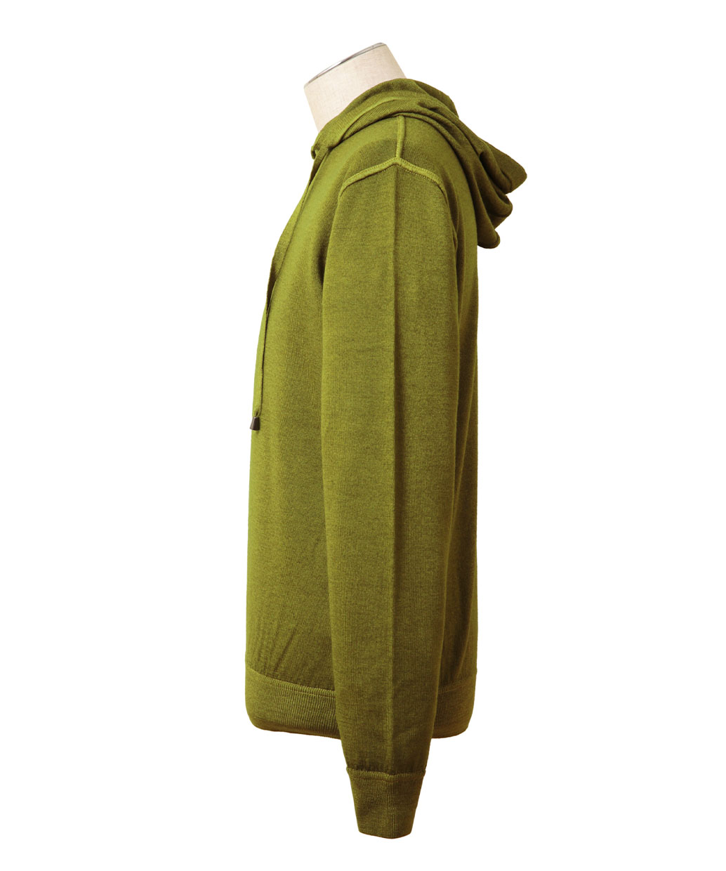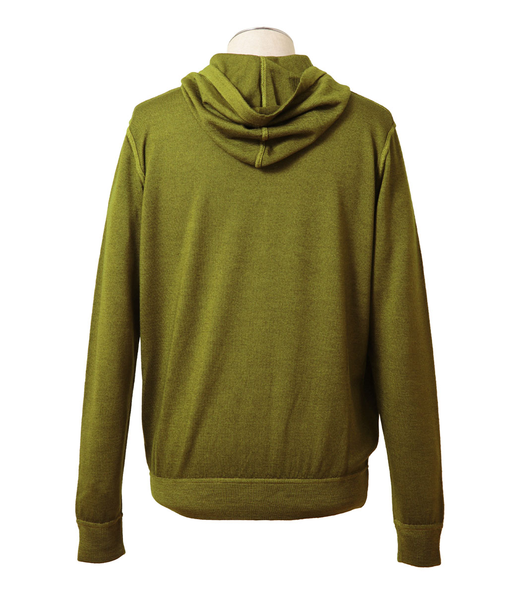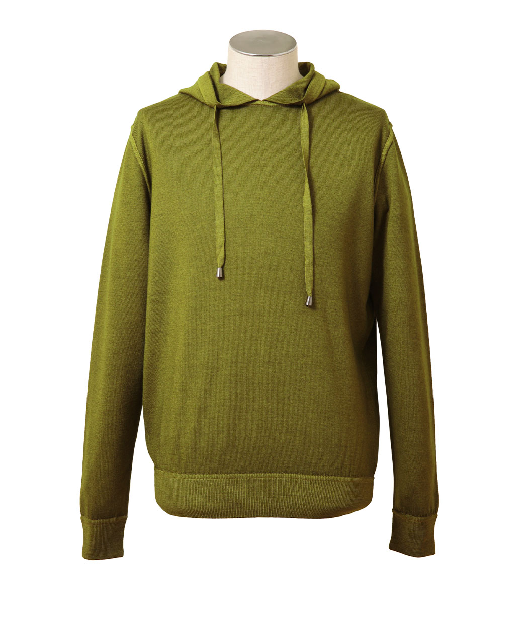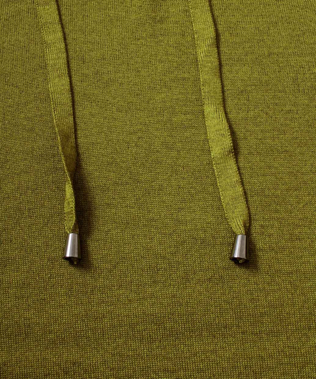 上質なウール100%の細番手の糸で編み上げたハイゲージのニット生地で仕上げたフーディーセーター。袖口や裾口には一般的な絞りの強いリブ編みではなく、弱めのリブ編みを採用してカットソーの様な感覚で着用いただけるデザインになっています。シャツとのコーディネートはもちろん、Tシャツと合わせてラフに着こなしてもかっこよく着こなせるセーターです。