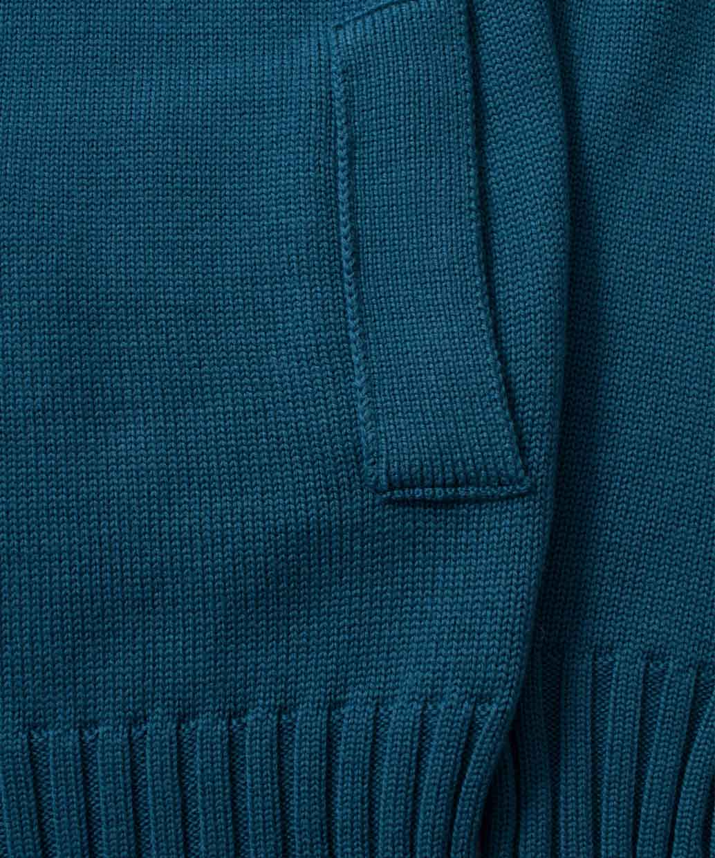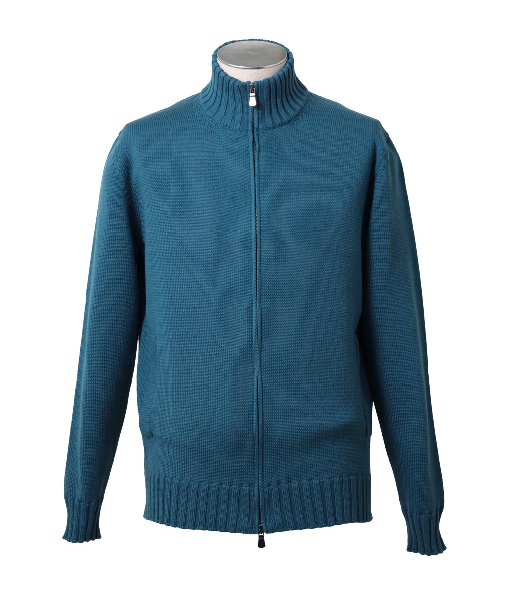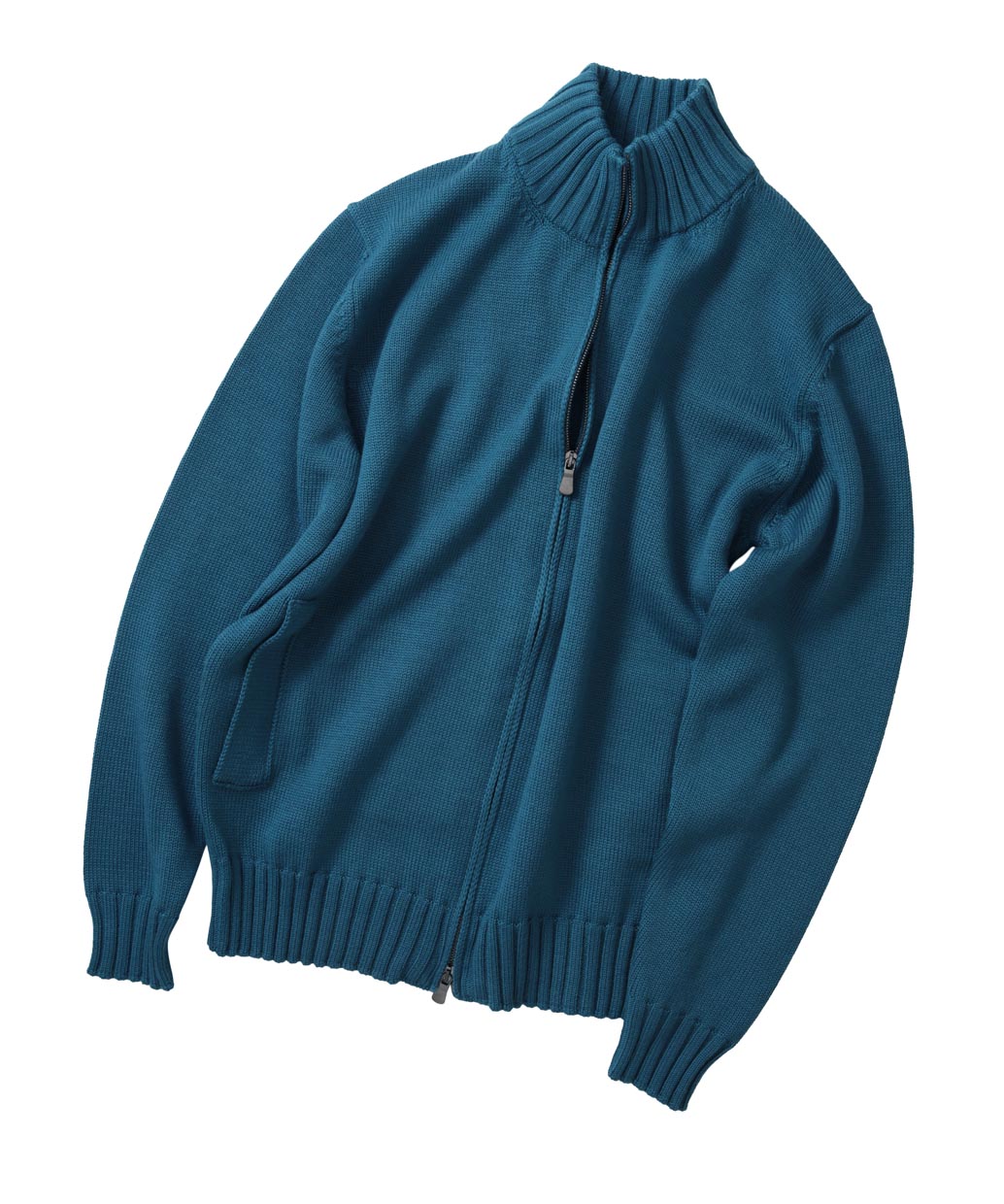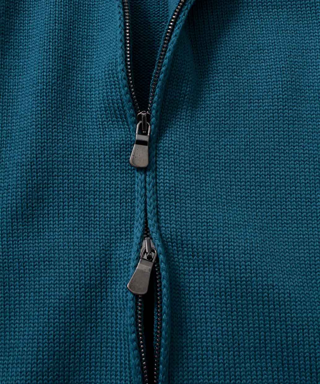 エクストラファインメリノと呼ばれる上質なウール100%の毛糸で編み上げたフロントジップスタイルのスタンドカラーセーター。ミドルゲージに編み上げられたセーターは秋口にはアウターとして、真冬にはコートやジャケットのミドルレイヤーとしても使える使い回しの効く一着となっています。