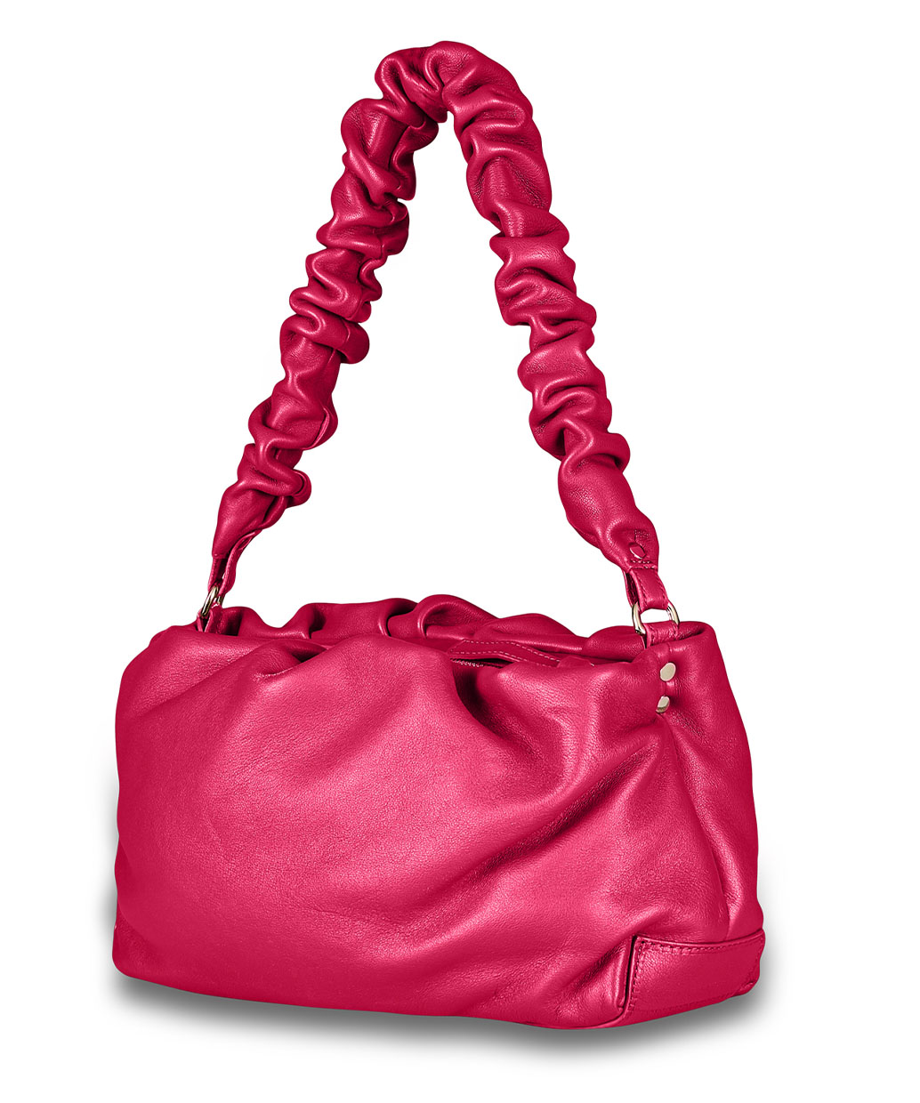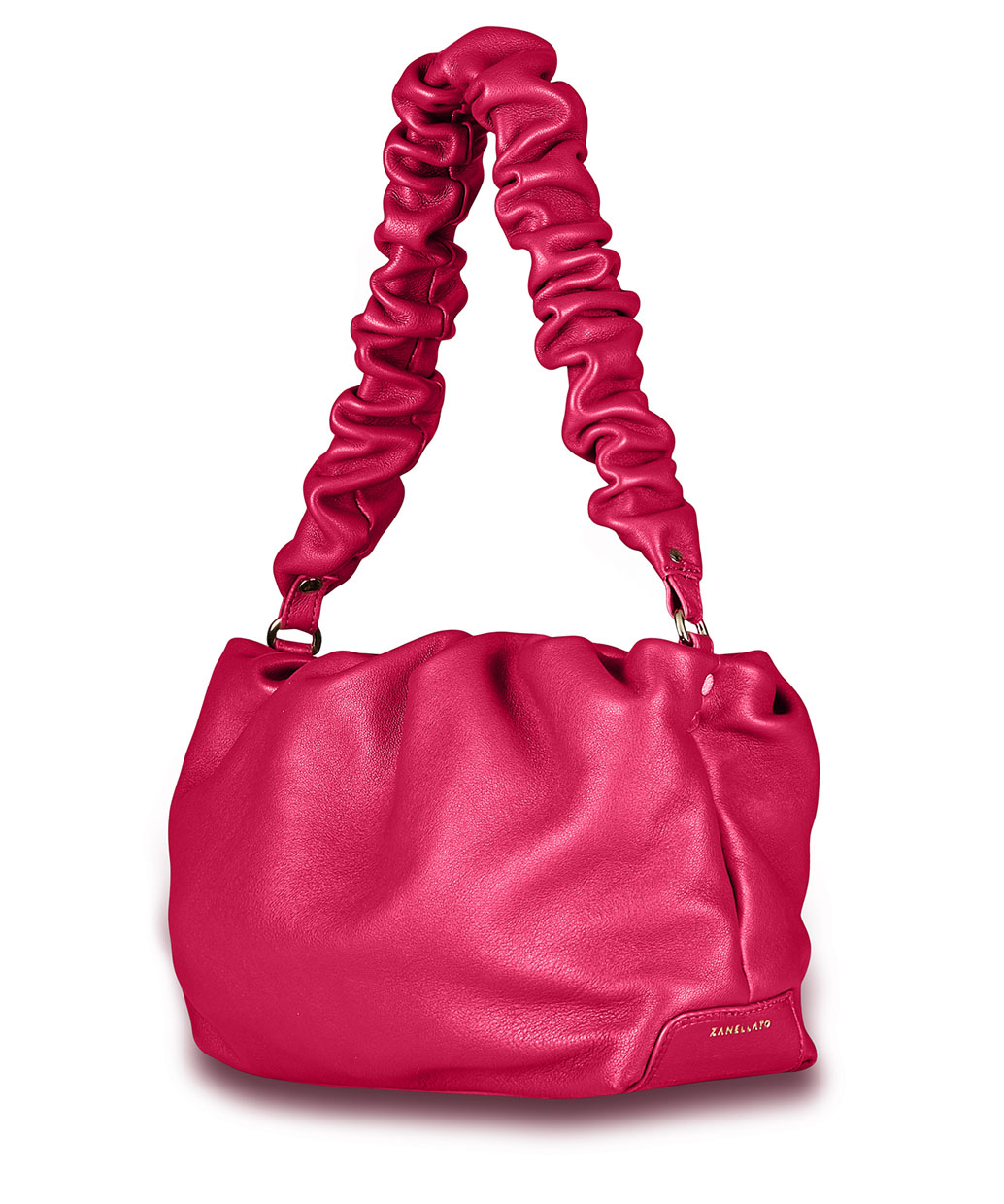 チューリップは、開口部の不規則なシャーリングデザインが特徴的なミニバッグです。時々で変わるシャーリングの見え方とブランドロゴを配さないスタイルが他には無い高尚な雰囲気を醸し出しています。ショルダーにもできるハンドルもシャーリングデザインが採用されデザインのアクセントになっています。