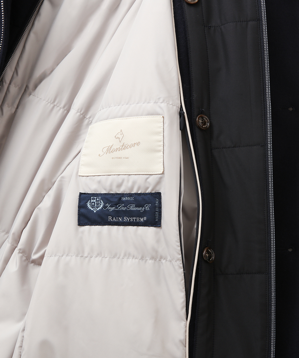 イタリアの老舗生地メーカー Loro Piana(ロロ・ピアーナ) の RAIN SYSTEM® 素材を採用。