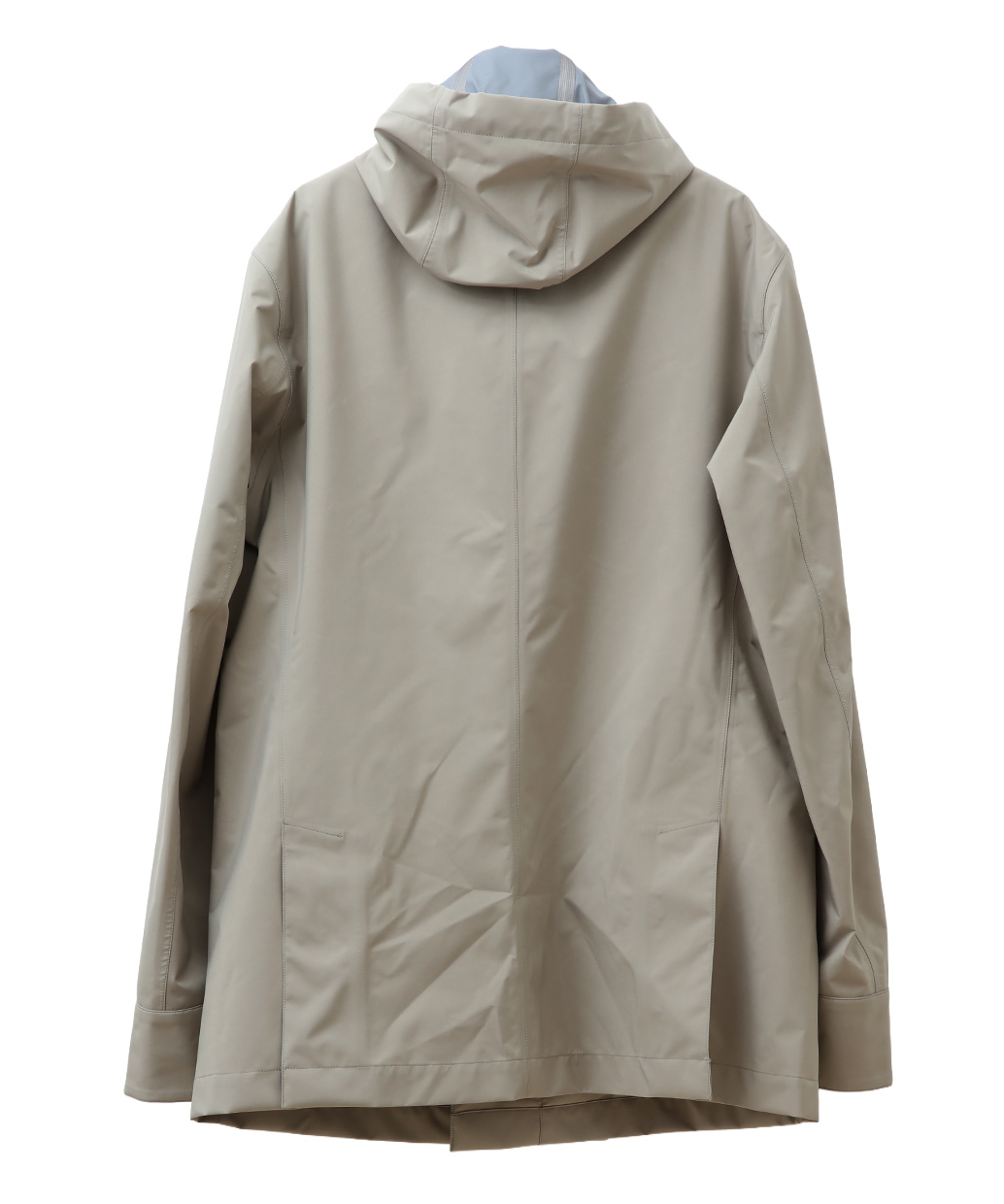 薄手でありながら通気性を確保しつつ、防風性と撥水性も備え、端正な佇まいと実用性を両立しています。