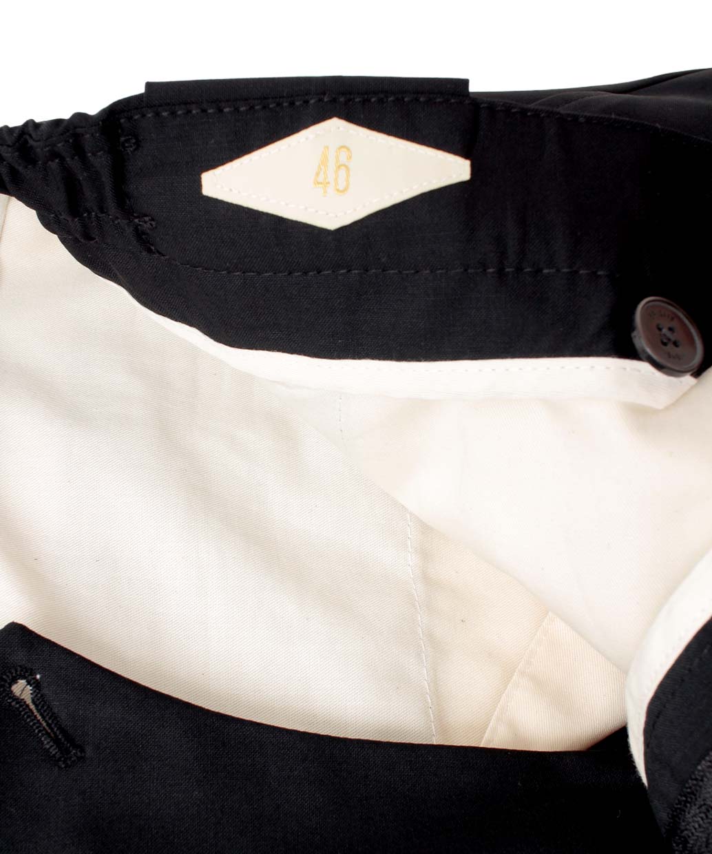 ・ウエストはサイドのみシャーリング仕様で、快適さと端正さを両立
